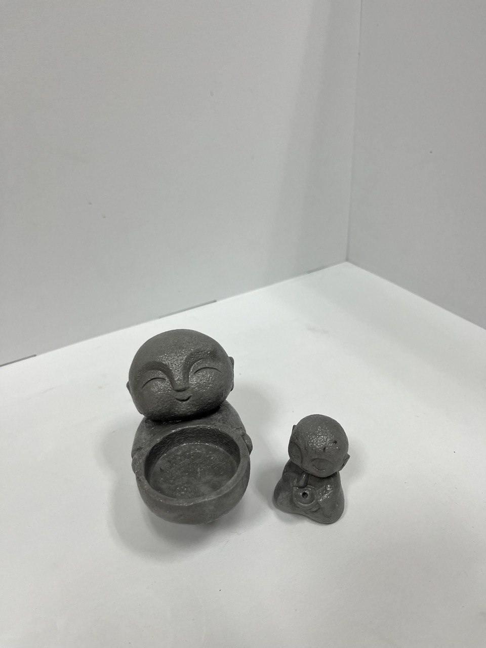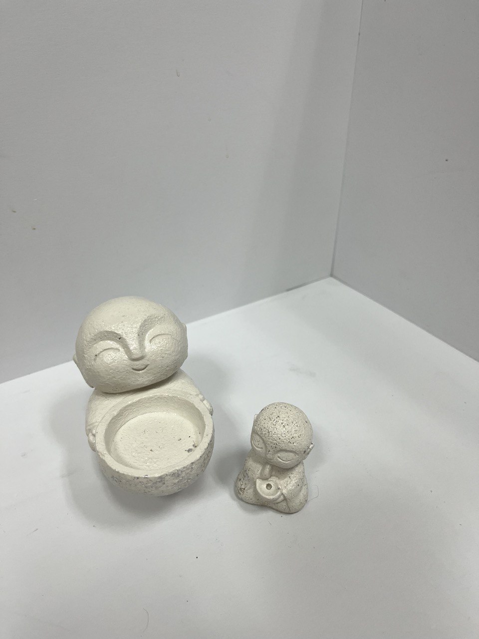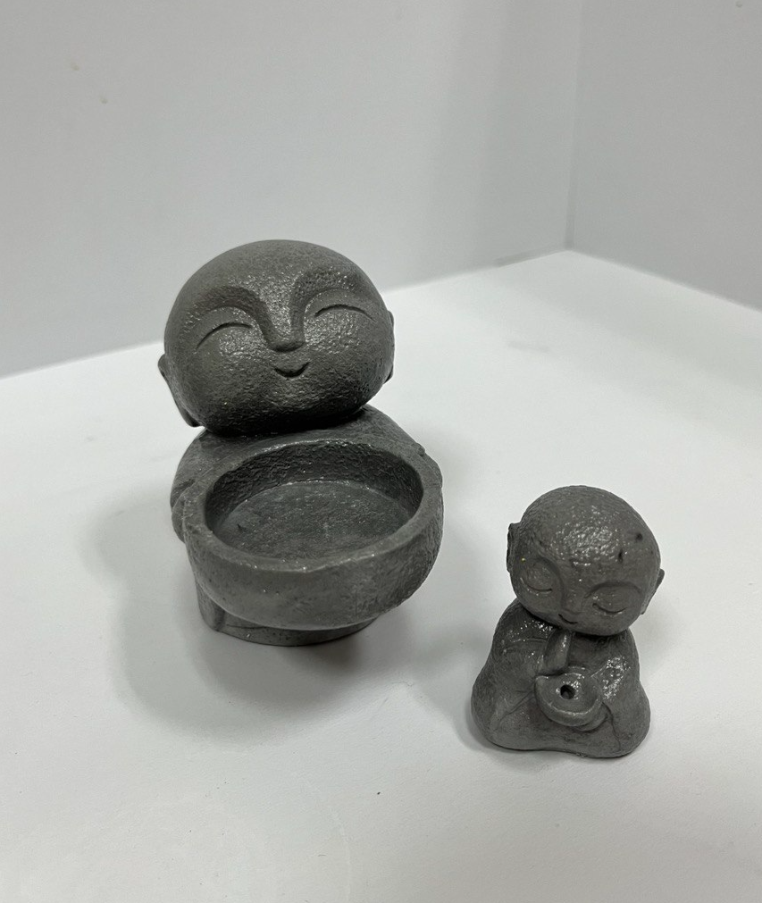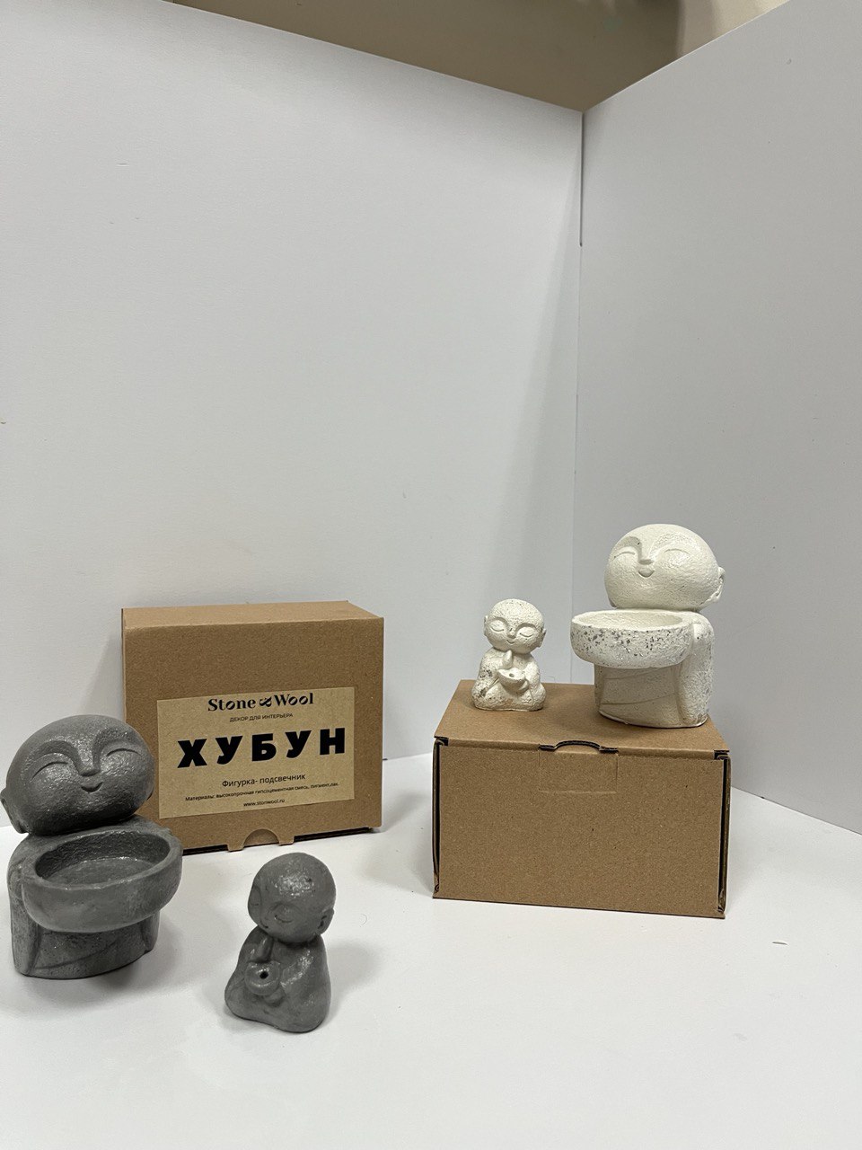 В наборе две фигурки: 1) Подставка для чайной свечи или для благовоний 2)Подставка для палочки благовония. Цвет в наличии -темно серый и белый Упаковка - крафт коробка