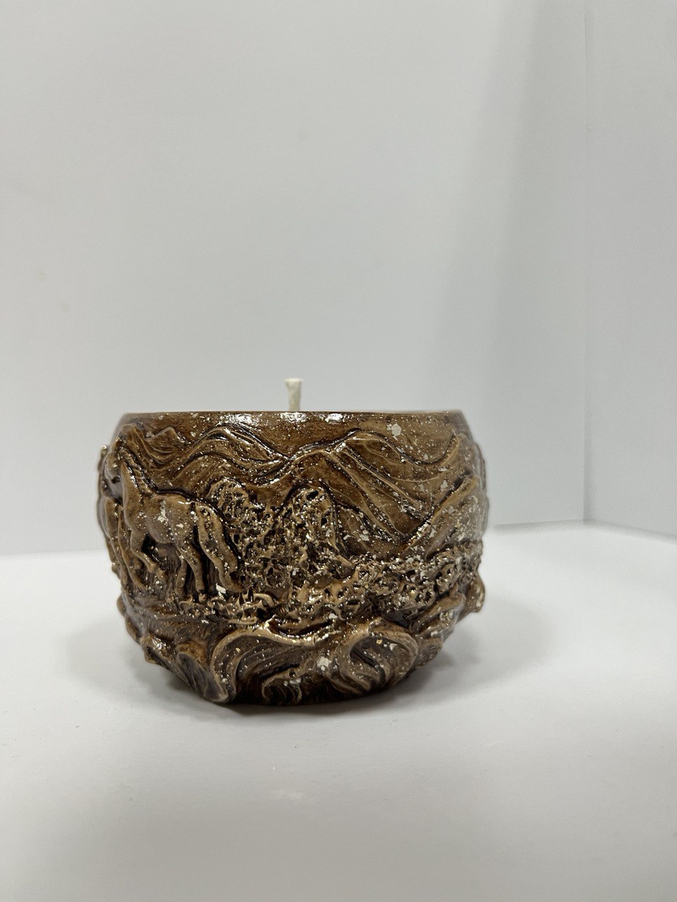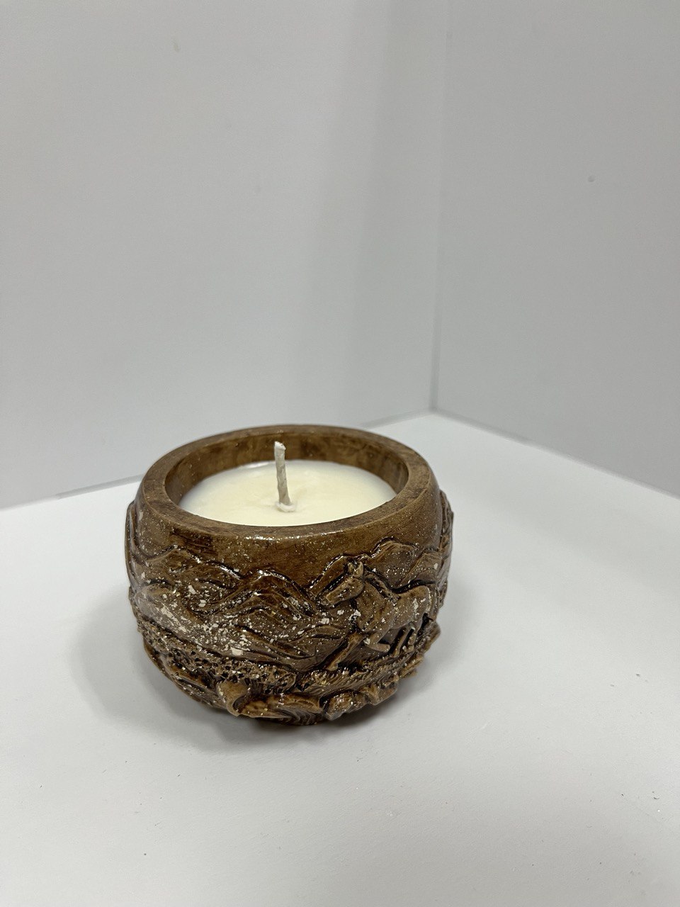 АВТОРСКАЯ ФОРМА ПОДСВЕЧНИКА, КРЫШКА СТИЛИЗОВАНА ПОД КРЫШУ ДАЦАНА. САМ ПОДСВЕЧНИК ЗАЛИТ ИЗ АРХИТЕКТУРНОГО БЕТОНА. ПОСЛЕ ДОГОРАНИЯ СВЕЧИ ПОДСВЕЧНИК МОЖНО ИСПОЛЬЗОВАТЬ