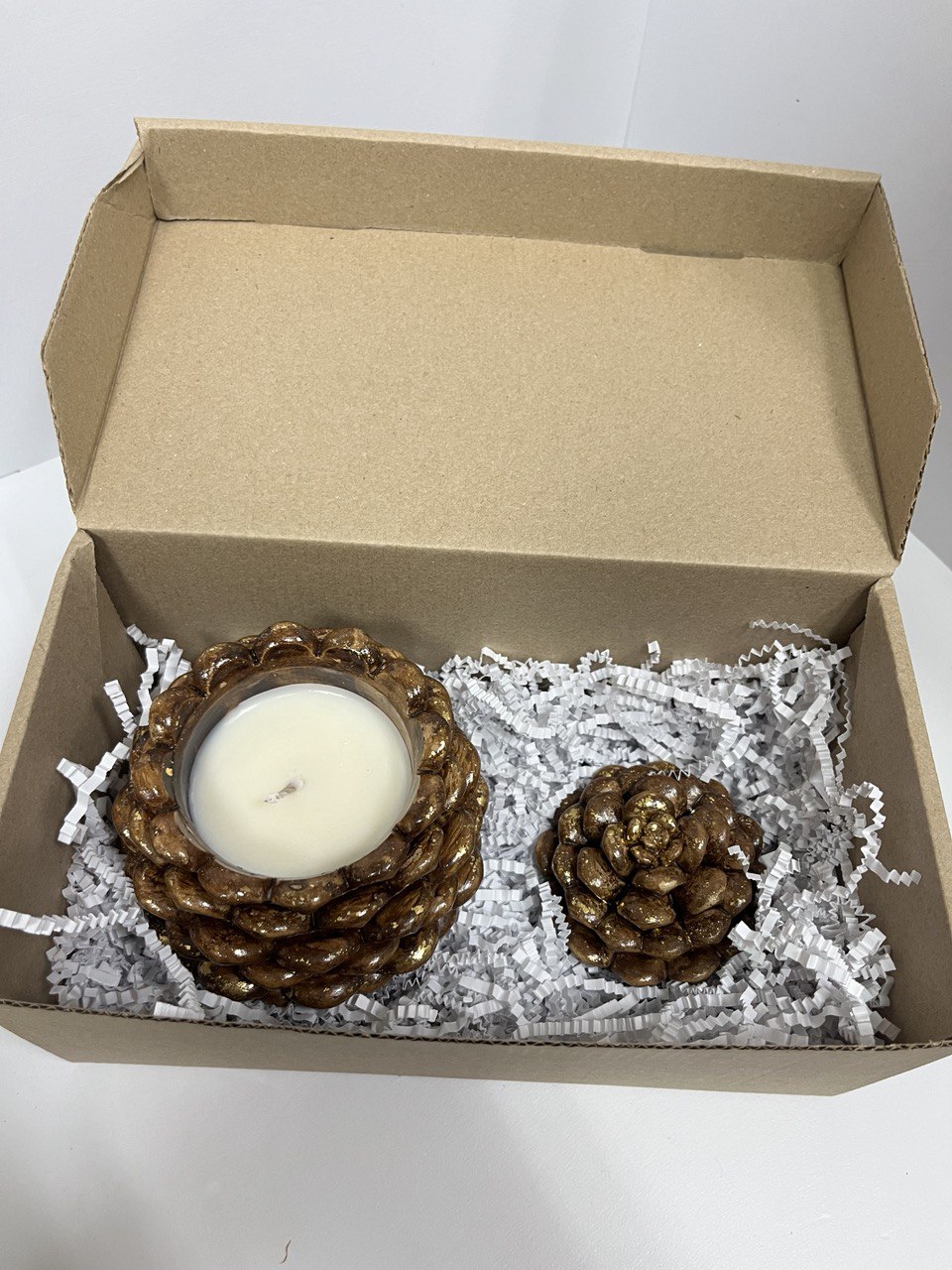 В наборе две фигурки: 1) Подставка для чайной свечи или для благовоний 2)Подставка для палочки благовония. Цвет в наличии -темно серый и белый Упаковка - крафт коробка