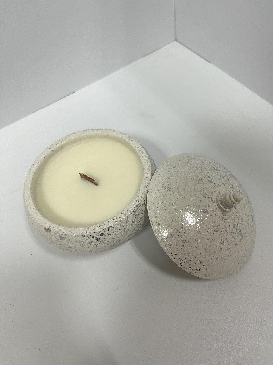 Цвет в наличии -серо-коричневый с серебром. Аромат - древесный+свежий ветер. Размер - 15*8 см Объем - 220 гр Упаковка - крафт коробка с бумажным наполнителем